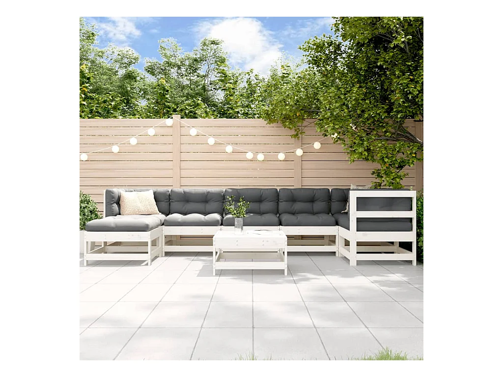 Salon de jardin 8 pièces avec coussins blanc bois de pin