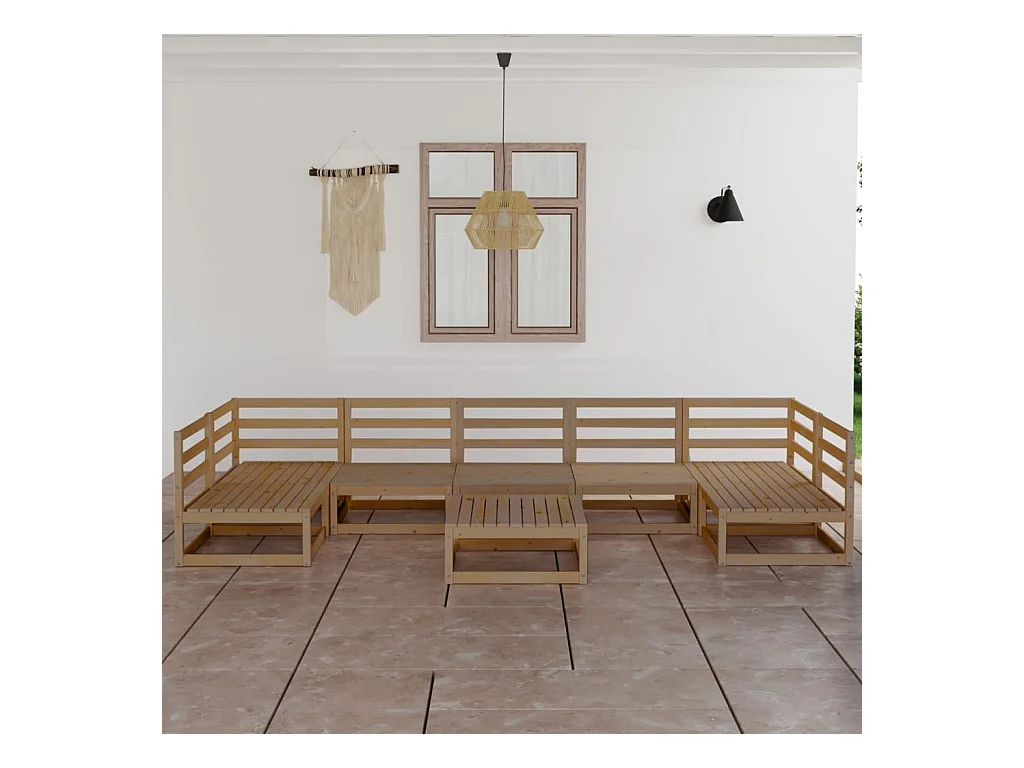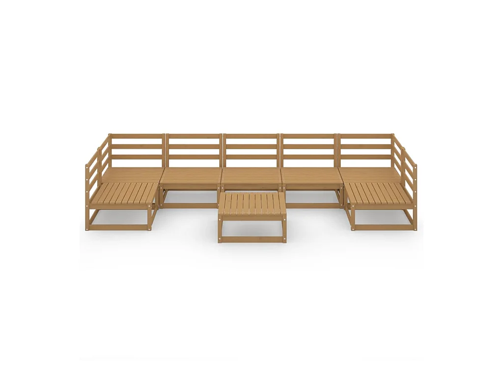 Salon de jardin 8 pièces marron miel bois de pin massif