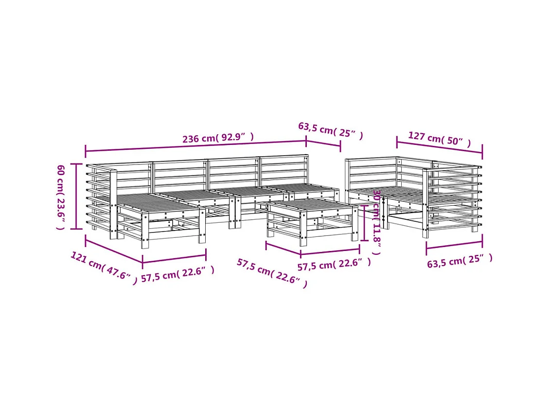 Salon de jardin 7 pcs Bois de pin massif SSG79541