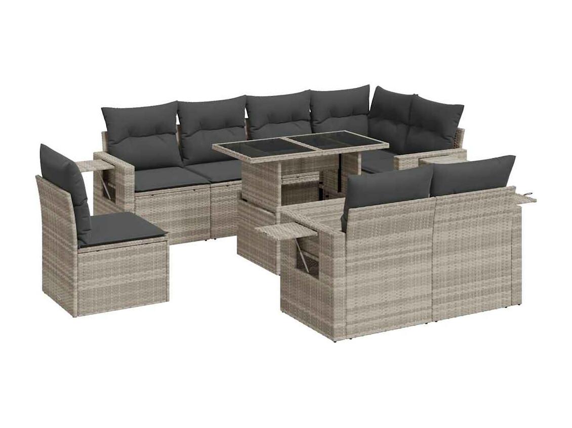 Salon de jardin 9 pcs avec coussins gris clair résine tressée