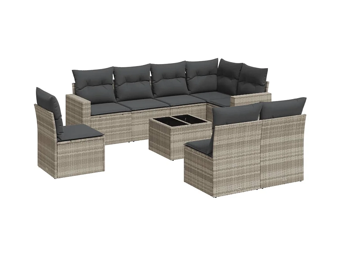 Salon de jardin 9 pcs avec coussins gris clair résine tressée