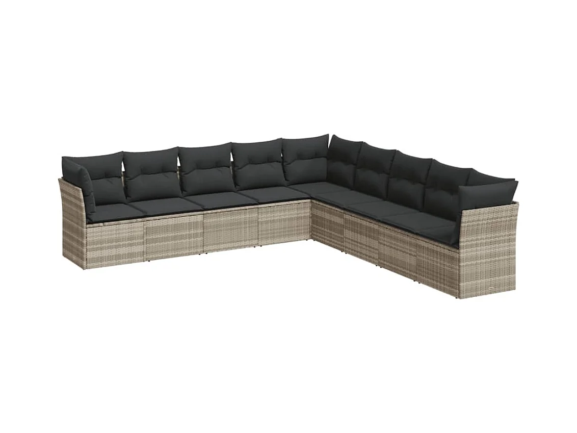 Salon de jardin 9 pcs avec coussins gris clair résine tressée