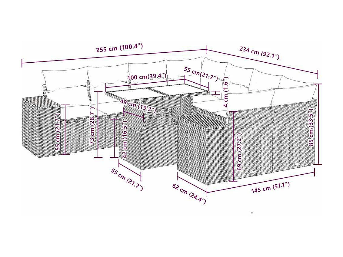 Salon complet de jardin Canapé 2 places et 2 fauteuils