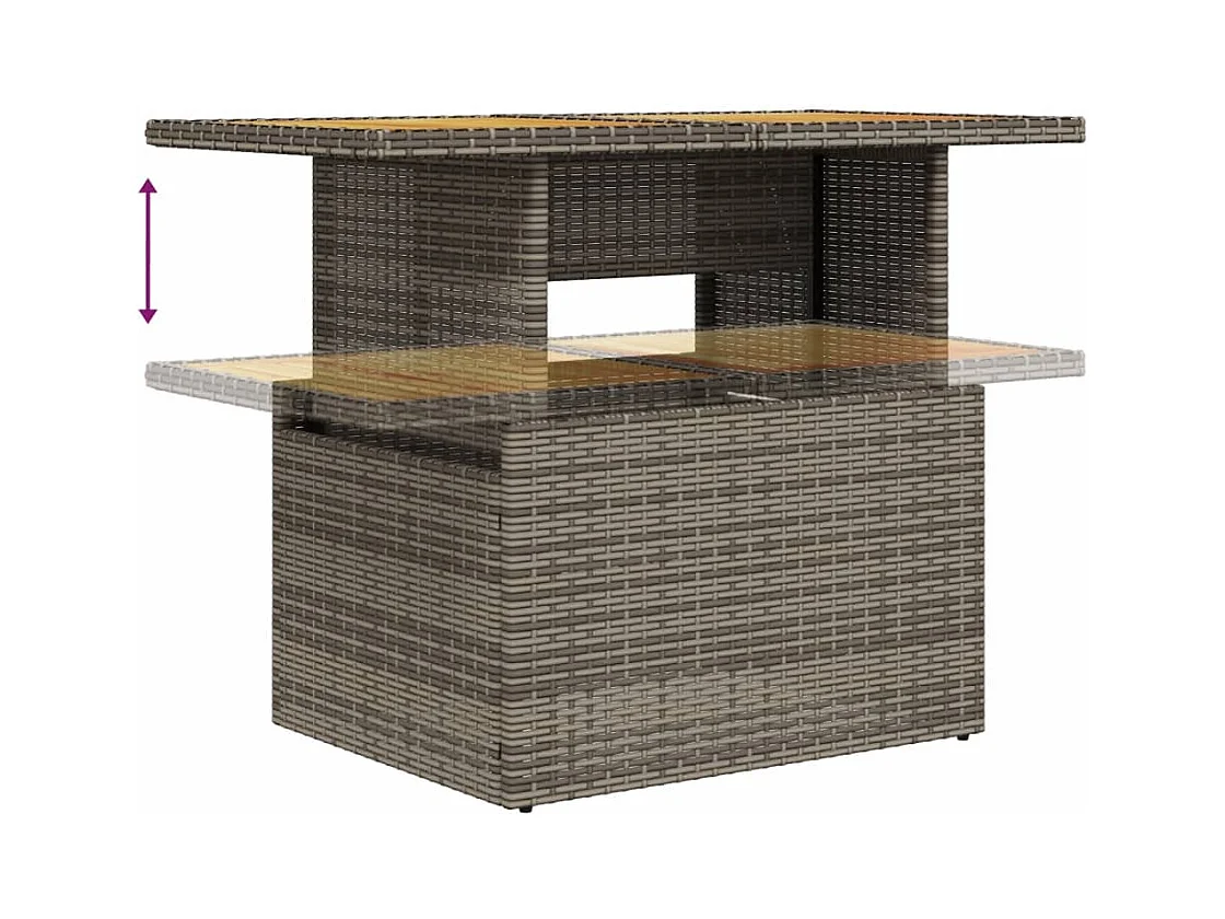 Salon de jardin avec coussins 9 pcs gris résine tressée acacia