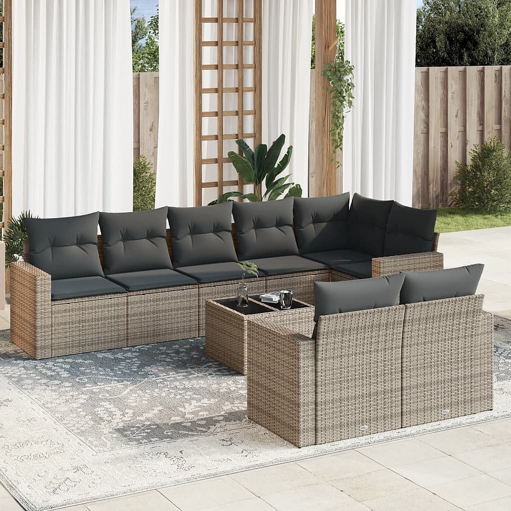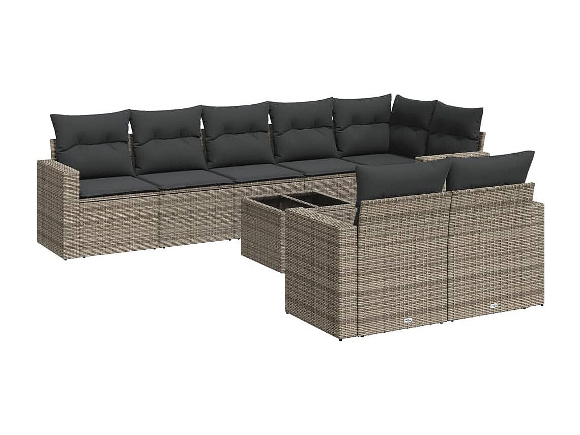 Salon de jardin 9 pcs avec coussins gris résine tressée
