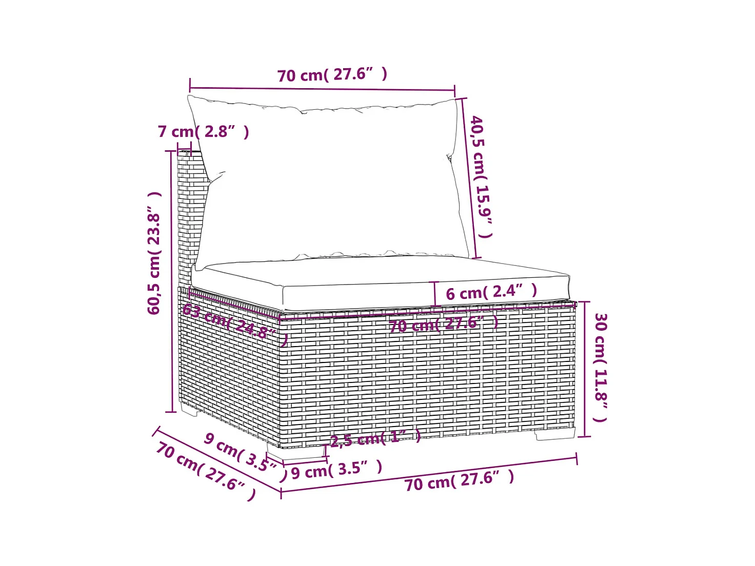 Salon de jardin avec coussins 9 pcs marron résine tressée
