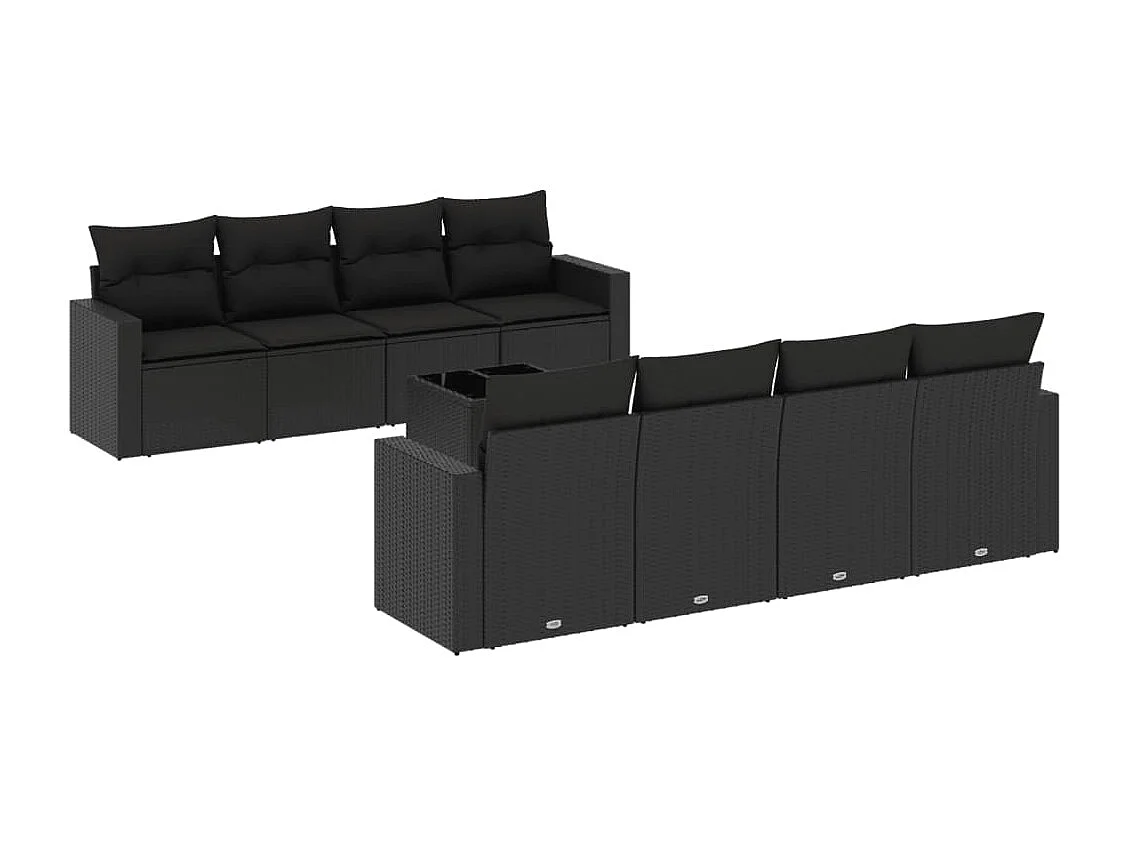 Salon de jardin 8 pcs avec coussins noir résine tressée