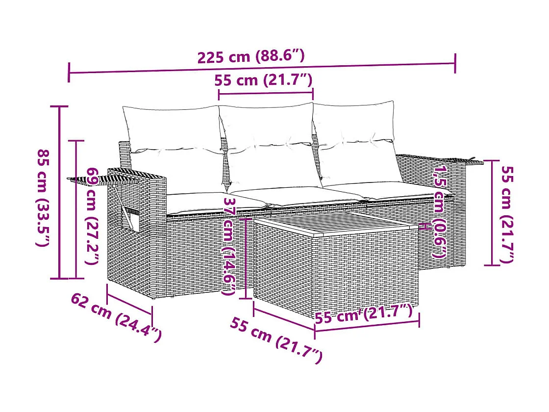 Salon complet de jardin Canapé 2 places et 2 fauteuils