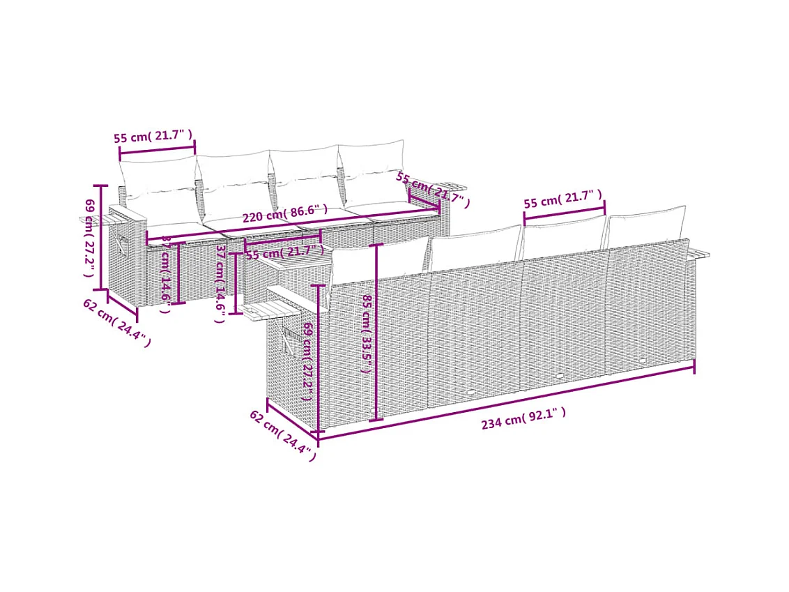 Salon complet de jardin Canapé 2 places et 2 fauteuils