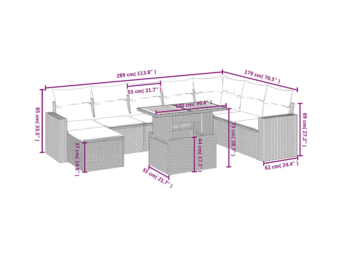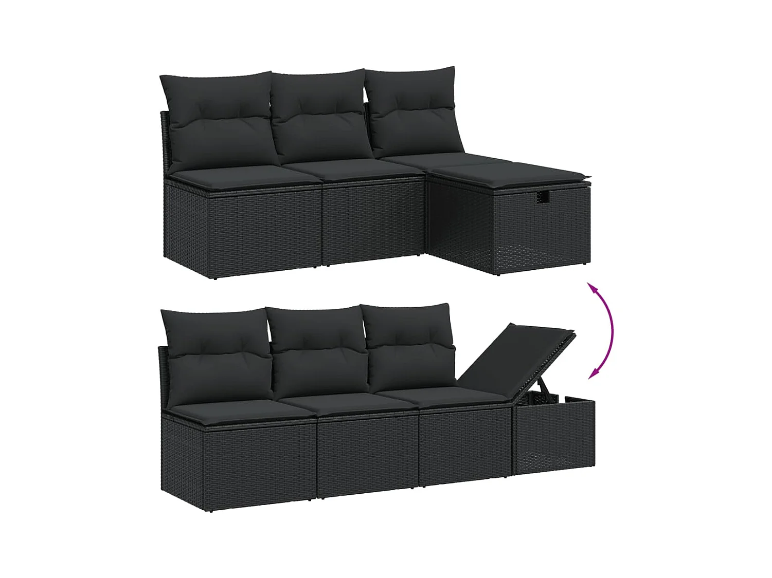 Salon de jardin 9 pcs avec coussins noir résine tressée