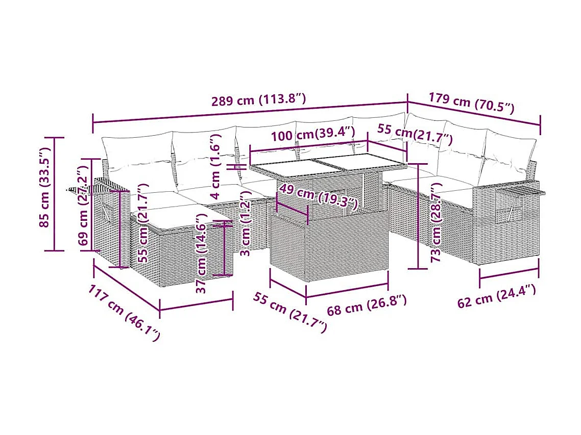 Salon complet de jardin Canapé 2 places et 2 fauteuils
