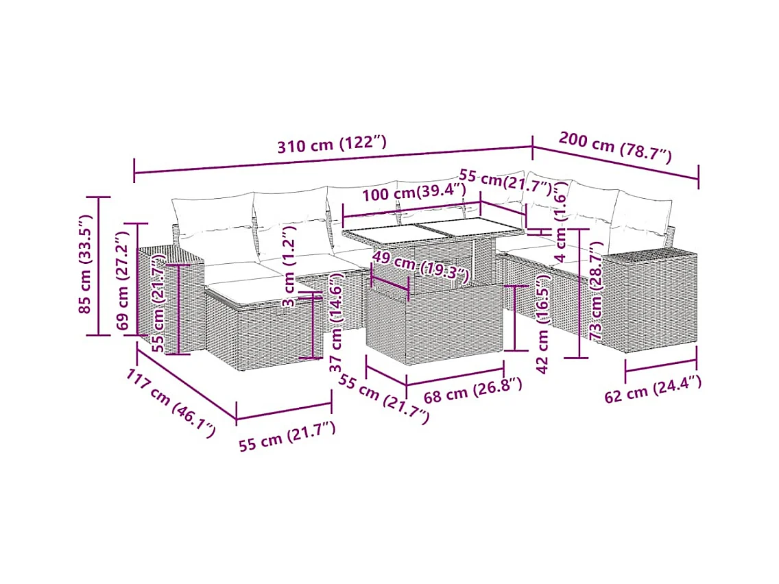 Salon complet de jardin Canapé 2 places et 2 fauteuils