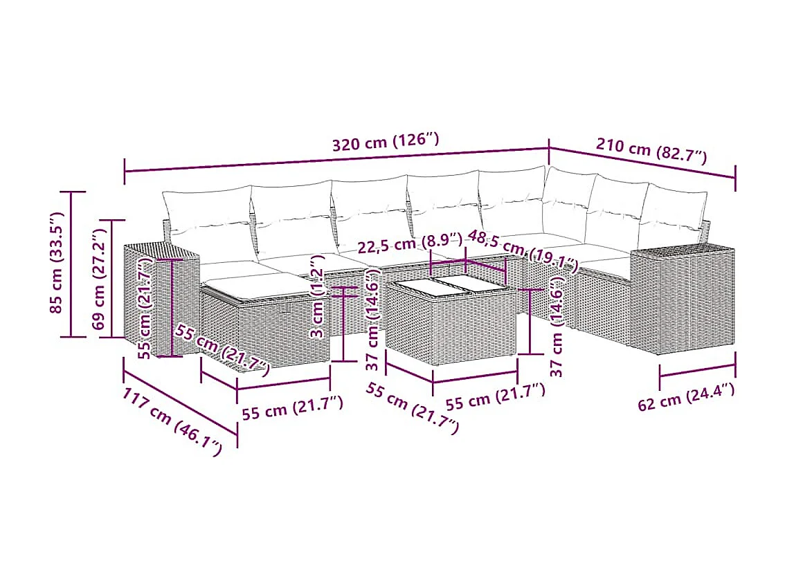 Salon complet de jardin Canapé 2 places et 2 fauteuils