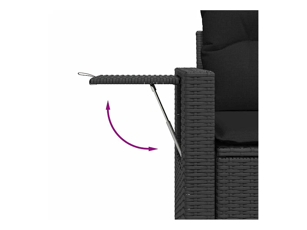 Salon de jardin 9 pcs avec coussins noir résine tressée