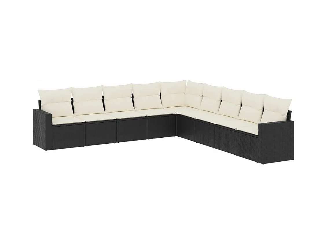 Salon de jardin 10 pcs avec coussins noir résine tressée