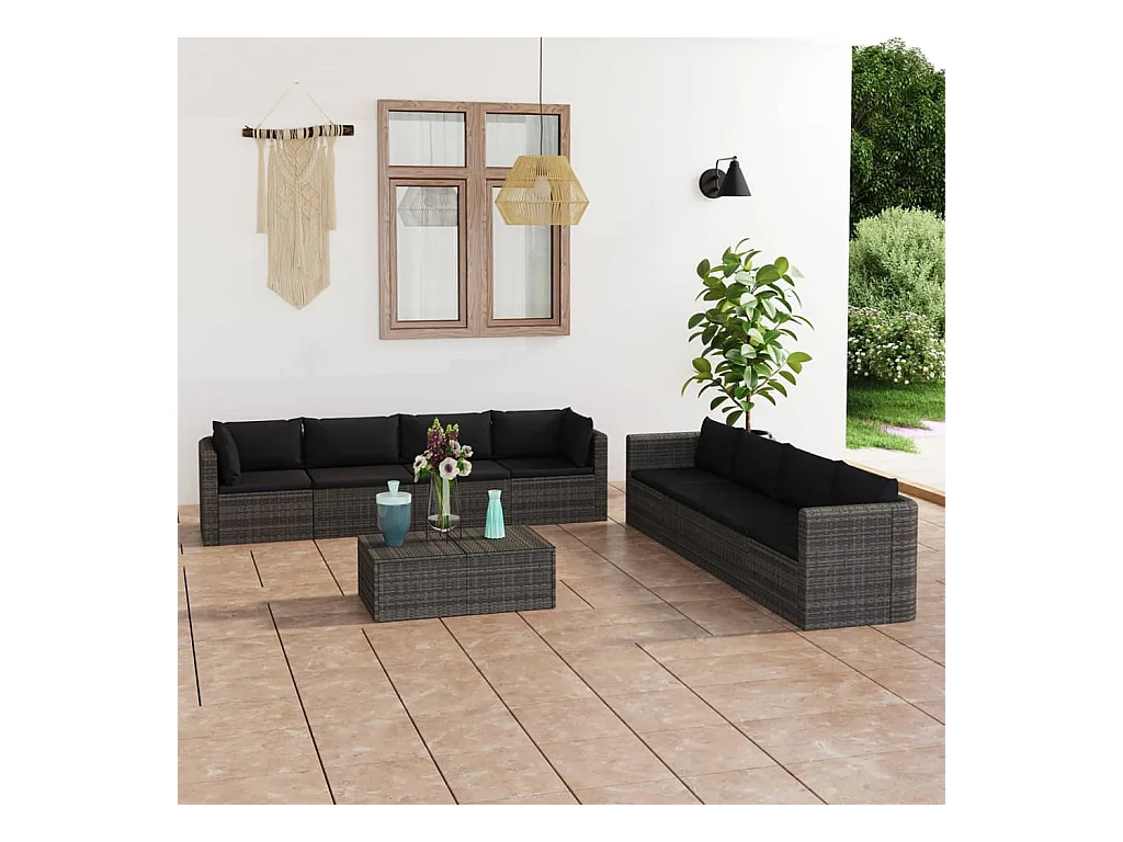 Salon de jardin 7 pcs avec coussins Résine tressée Gris