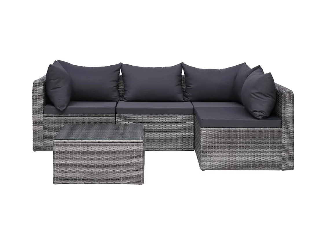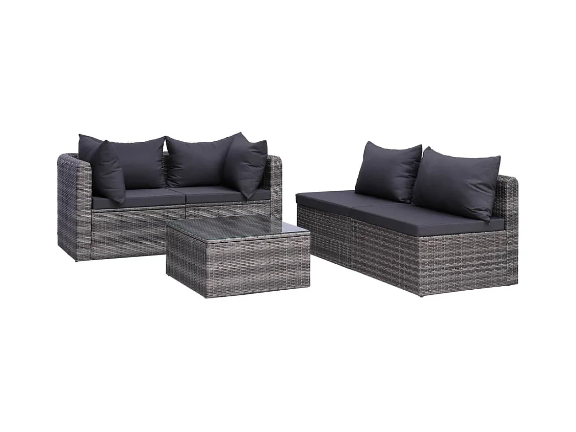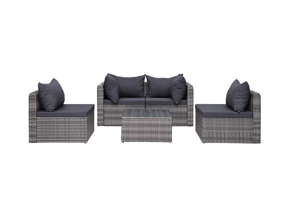Salon de jardin 6 pcs avec coussins résine tressée gris