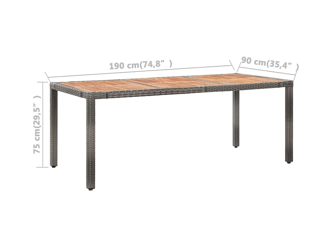 Ensemble à manger d’extérieur 11pcs et coussins poly rotin Gris