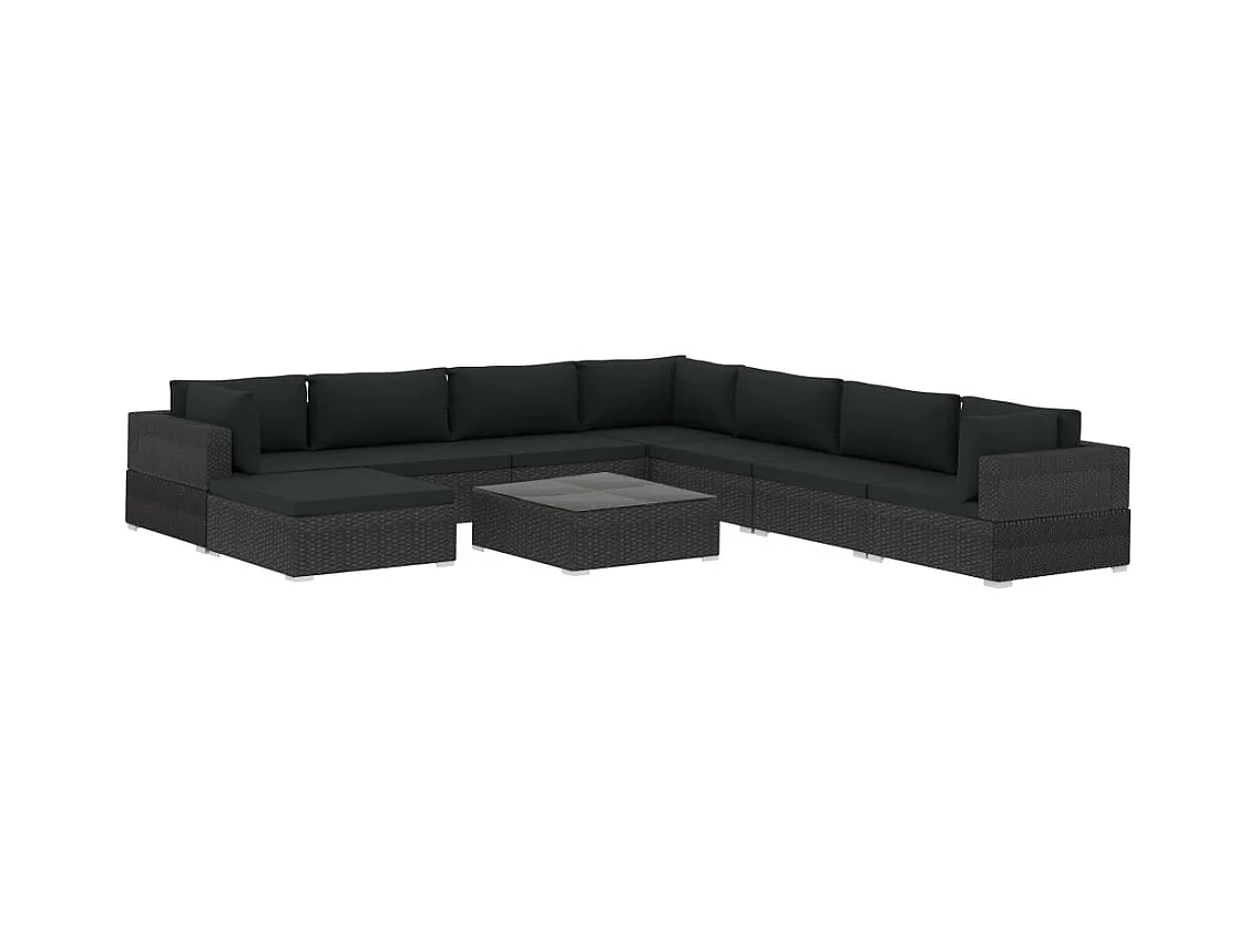 Salon de jardin 9 pcs avec coussins Résine tressée Noir
