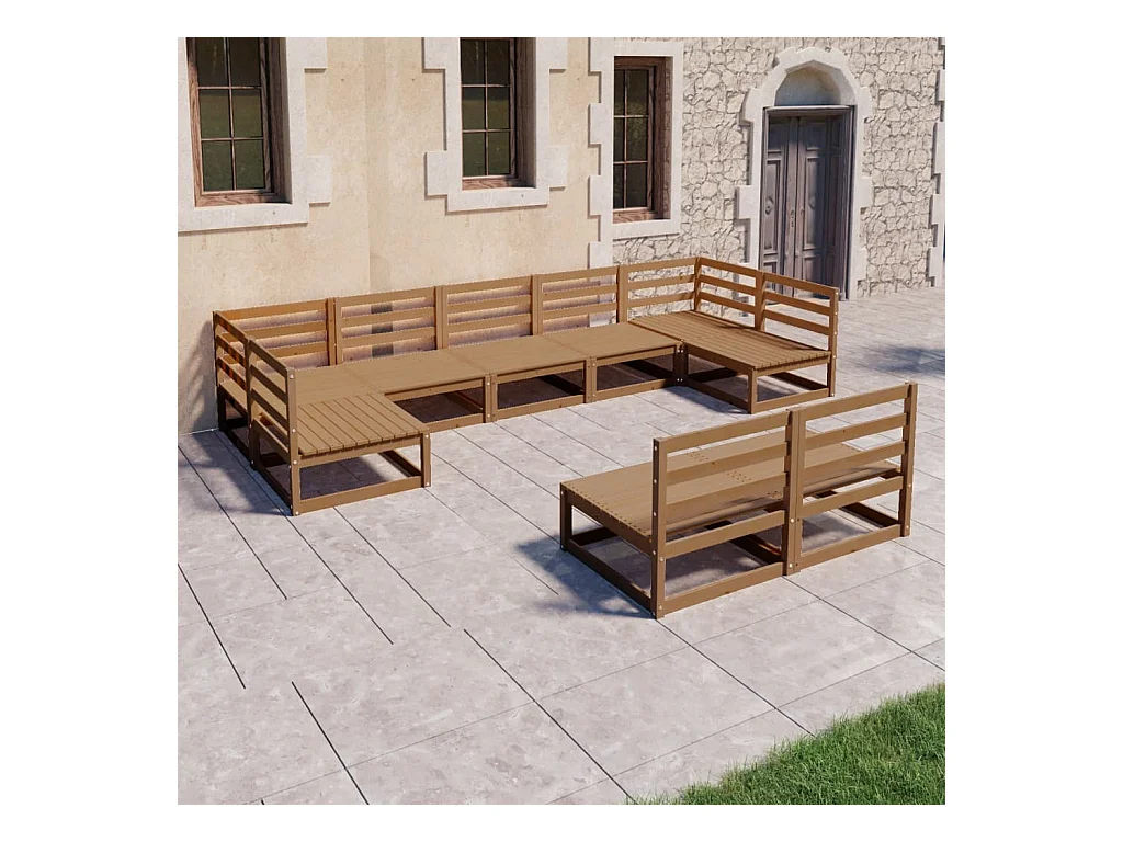 Salon de jardin 11 pcs bois de pin massif