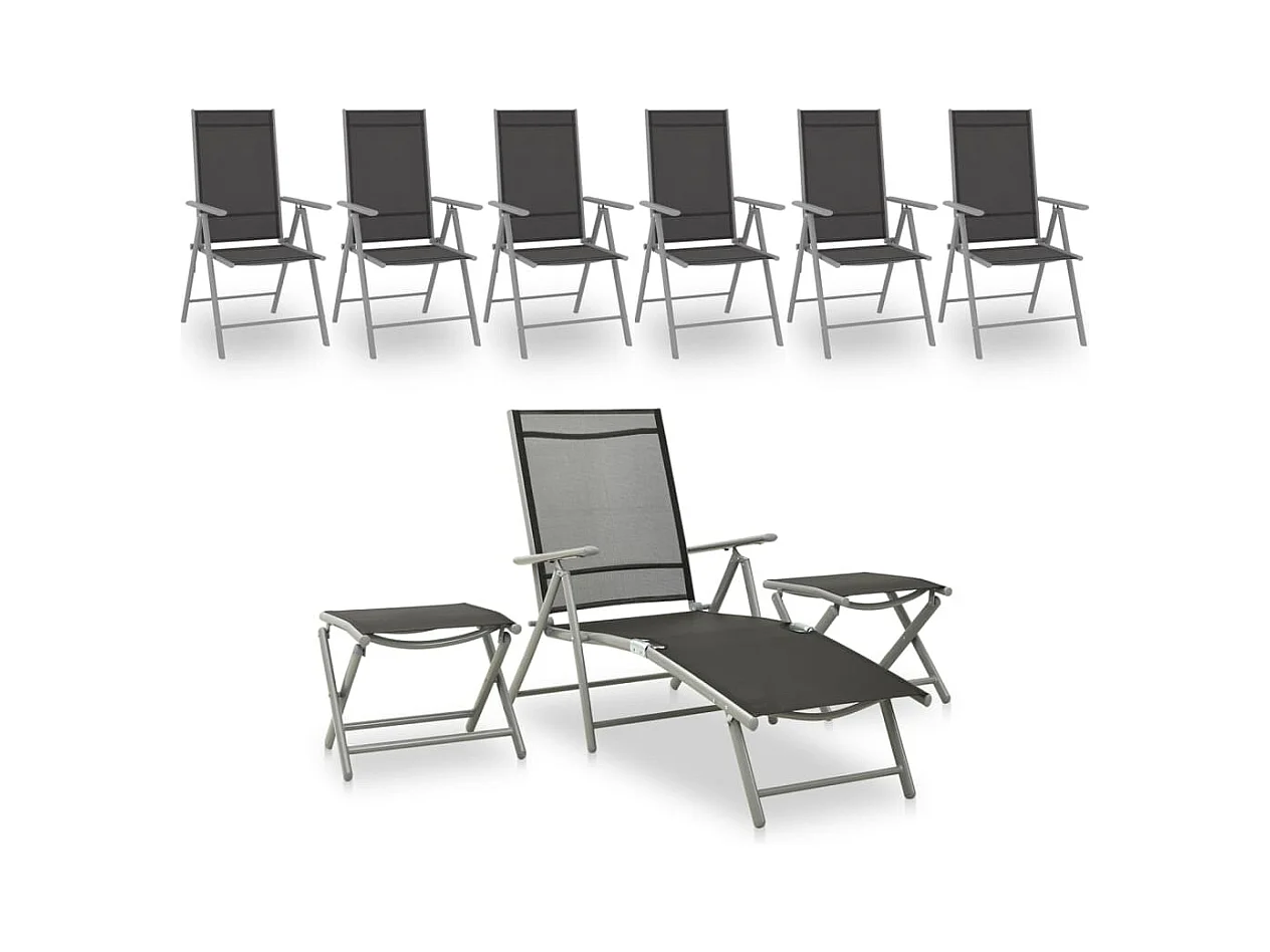 Salon de jardin 5 pcs Textilène Aluminium Noir