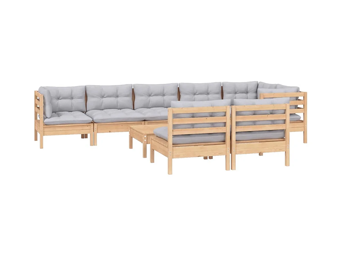 Salon de jardin 9 pièces avec coussins gris Bois de pin solide