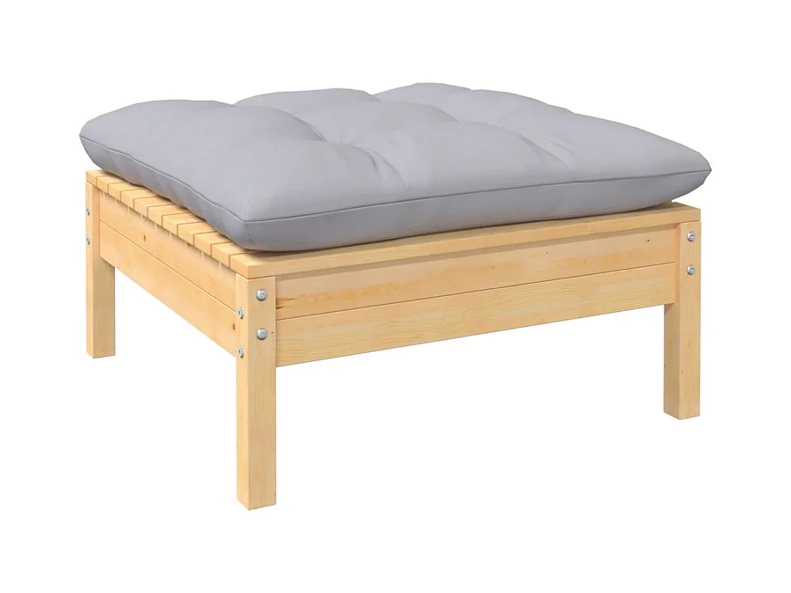 Salon de jardin 9 pièces avec coussins gris bois de pin massif