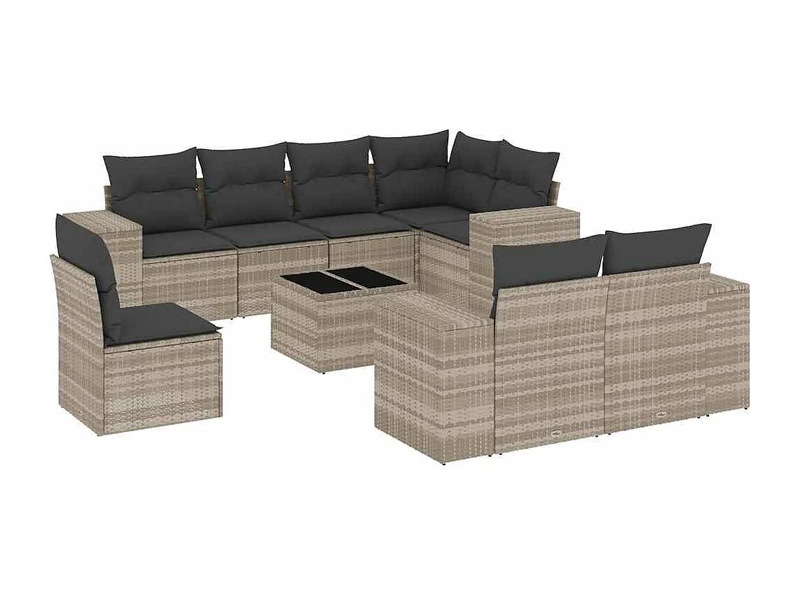 Salon de jardin 9 pièces avec coussins gris clair résine tressée