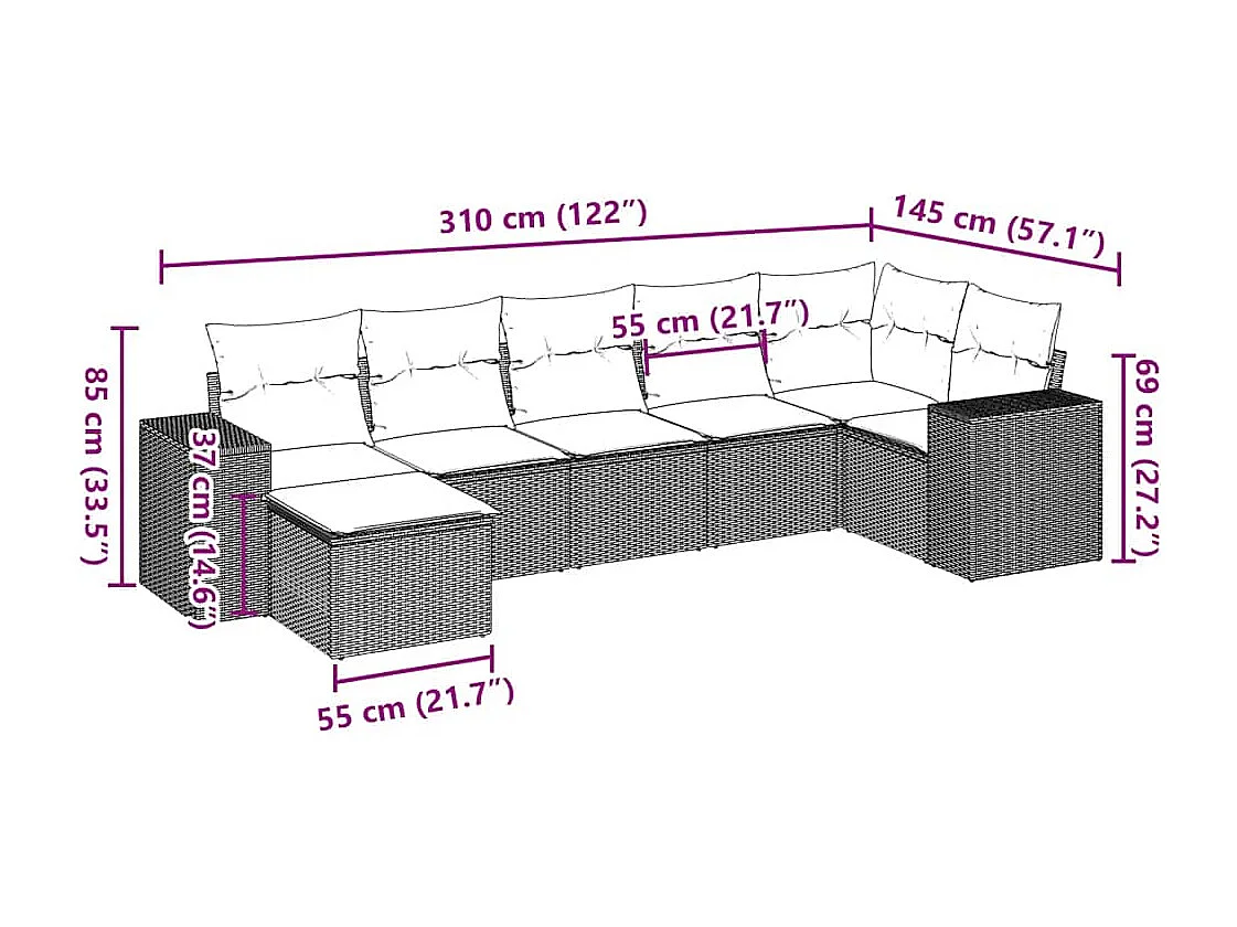 Salon complet de jardin Canapé 2 places et 2 fauteuils