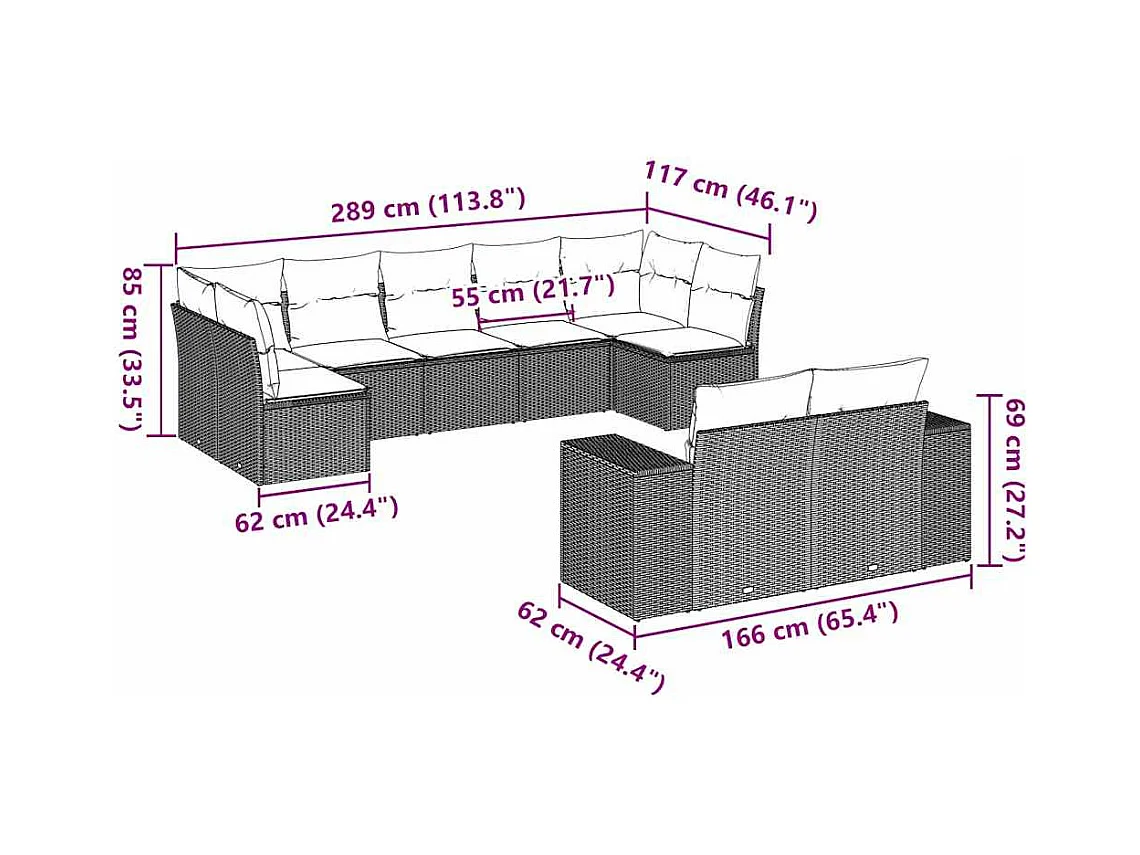 Salon de jardin avec coussins 10 pièces gris clair résine tressée