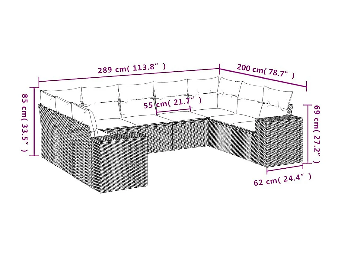 Salon de jardin 9 pièces avec coussins gris clair résine tressée