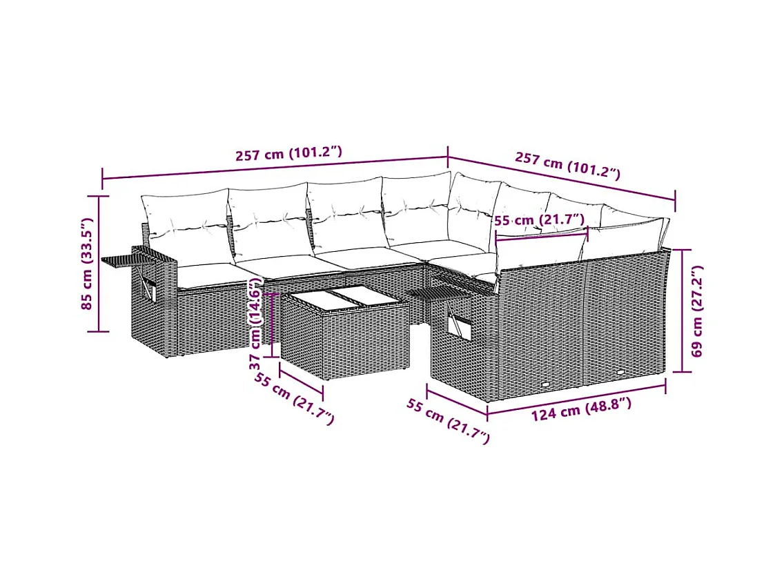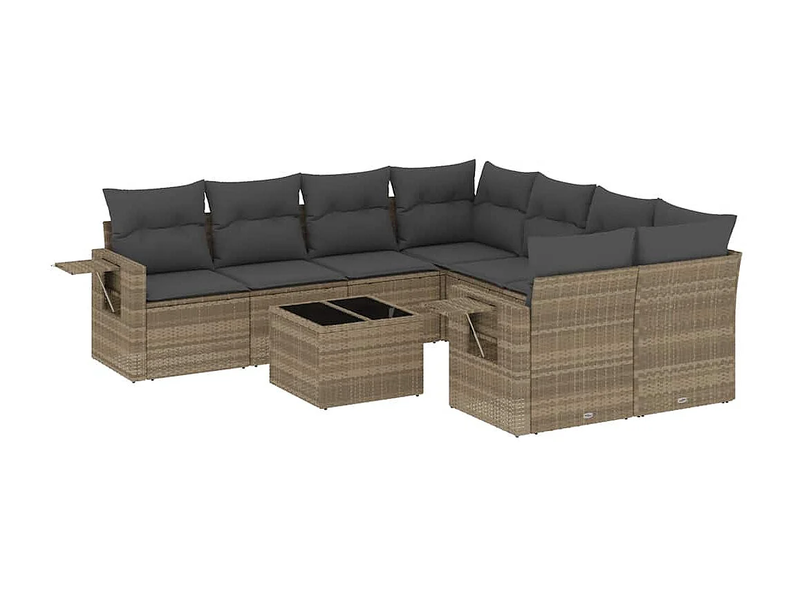 Salon de jardin 9 pièces avec coussins gris clair résine tressée