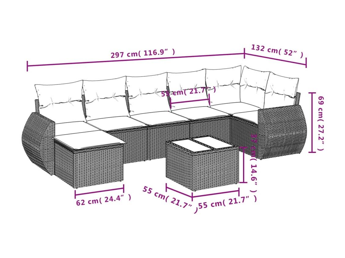 Salon de jardin 8 pièces avec coussins gris clair résine tressée