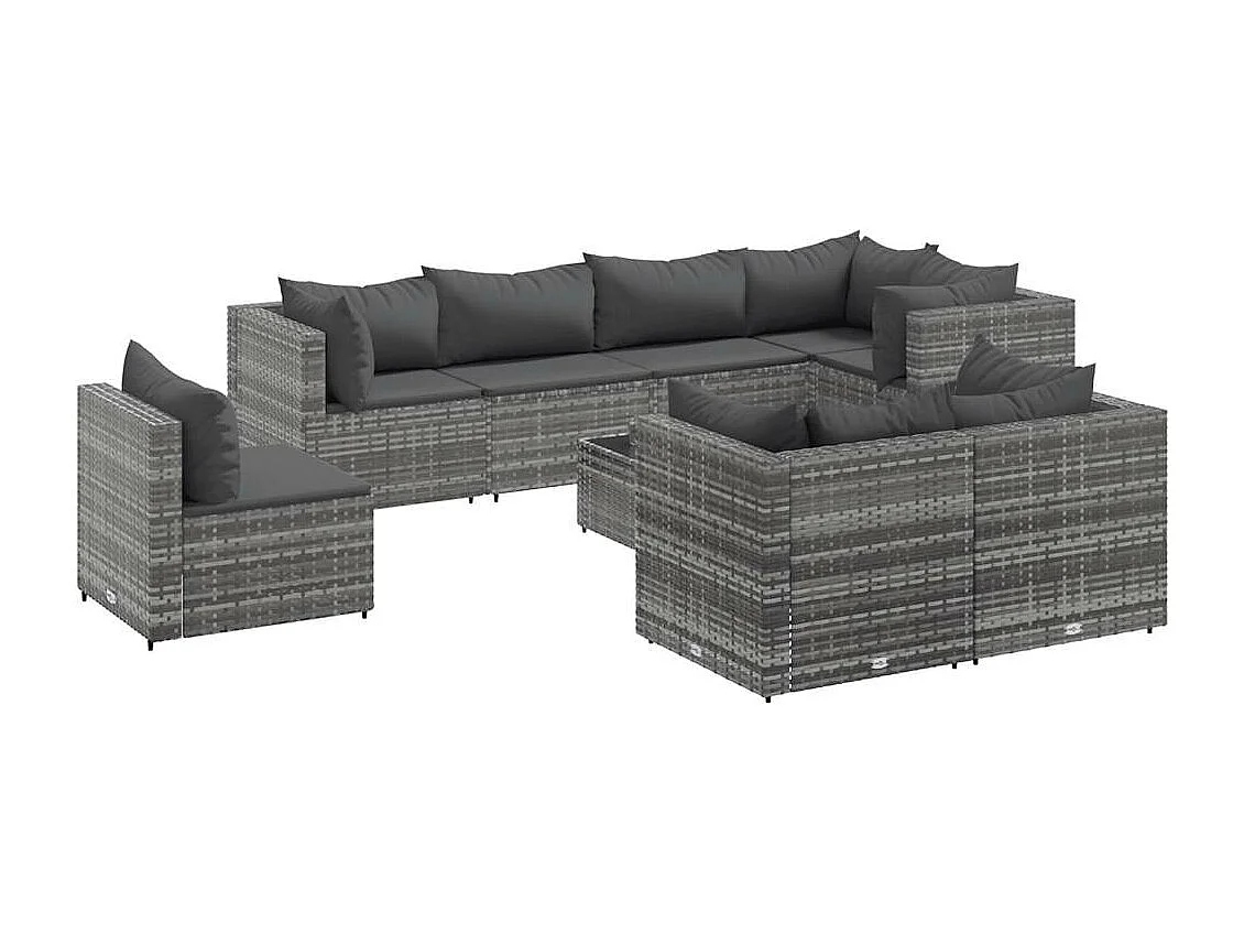 Salon de jardin 9 pièces avec coussins Gris Résine tressée