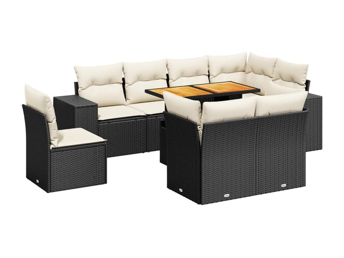Salon de jardin 9 pcs avec coussins noir résine tressée