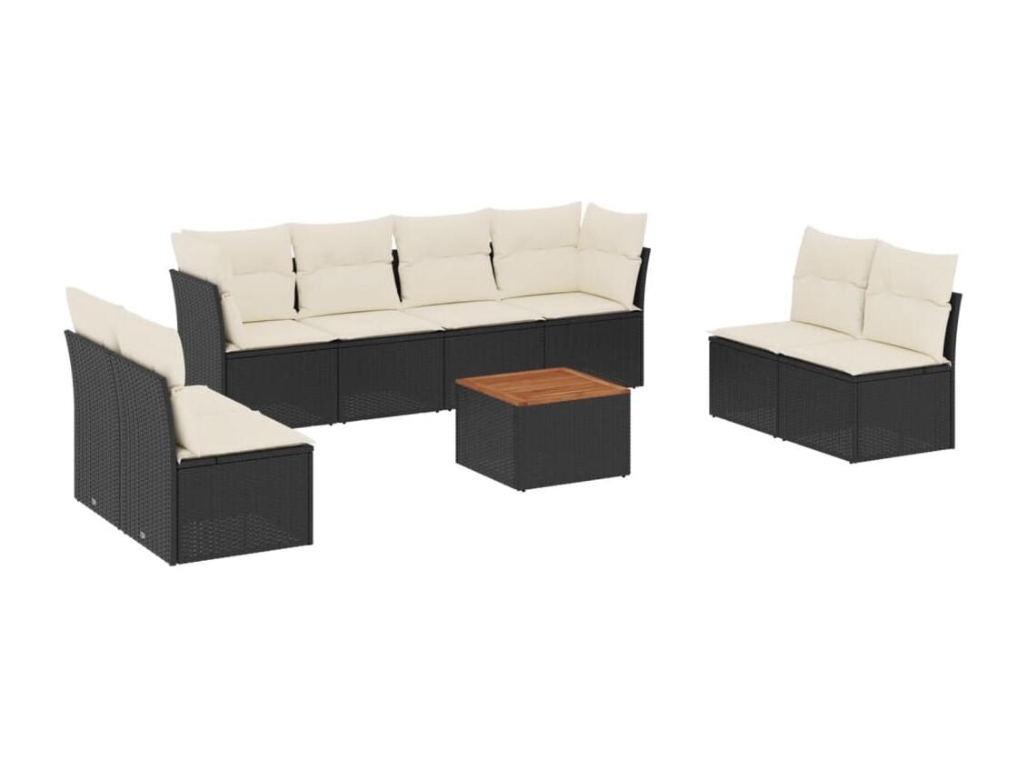 Salon de jardin 9 pièces avec coussins noir résine tressée