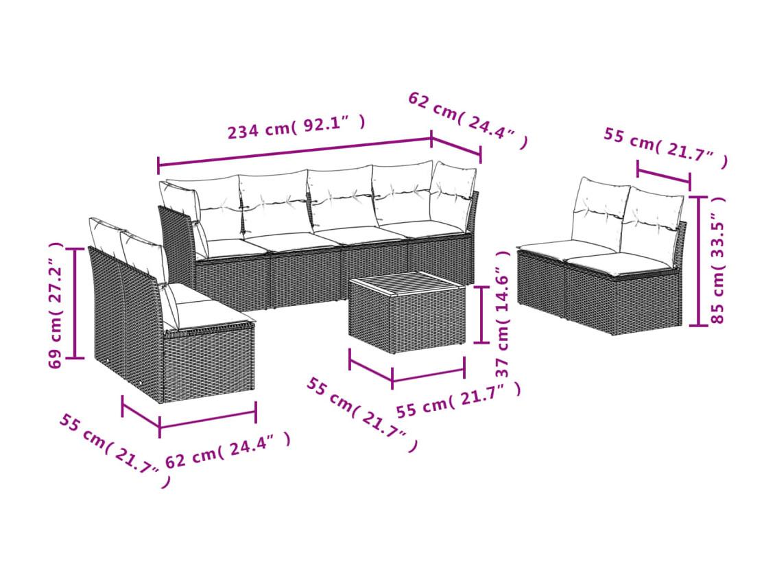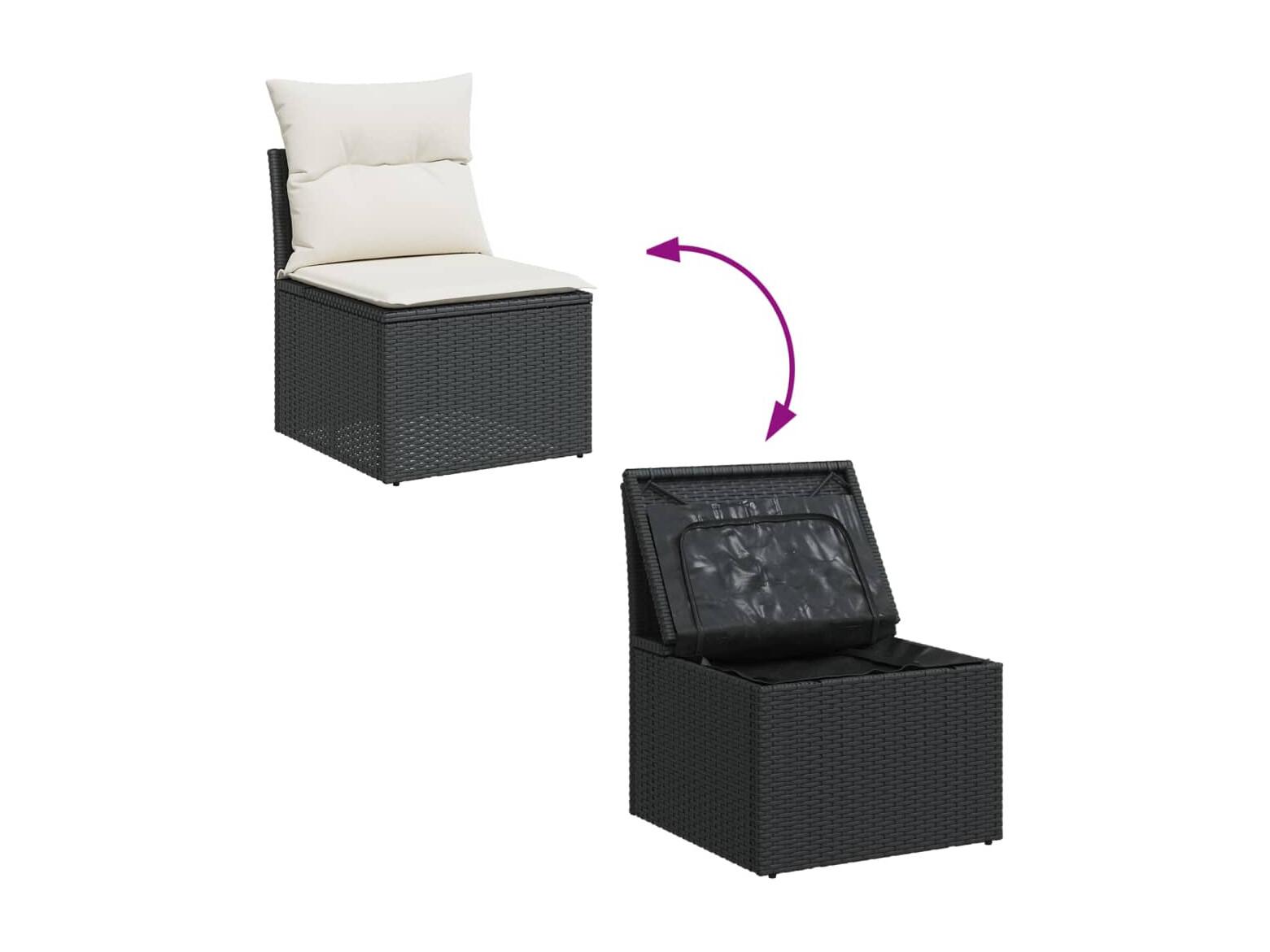 Salon de jardin 8 pcs avec coussins noir résine tressée
