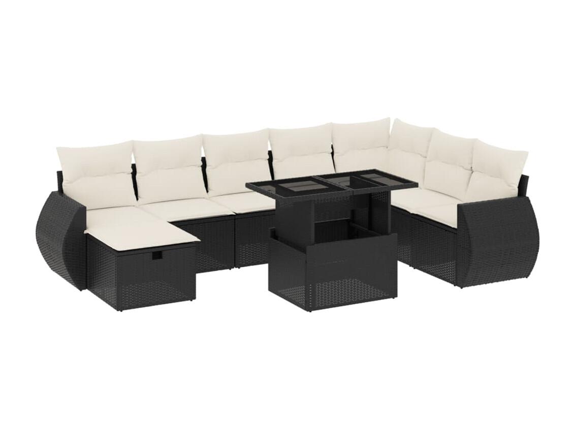 Salon de jardin 9 pièces avec coussins noir résine tressée