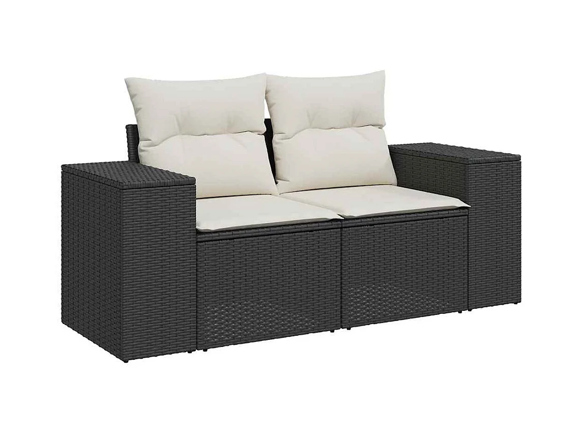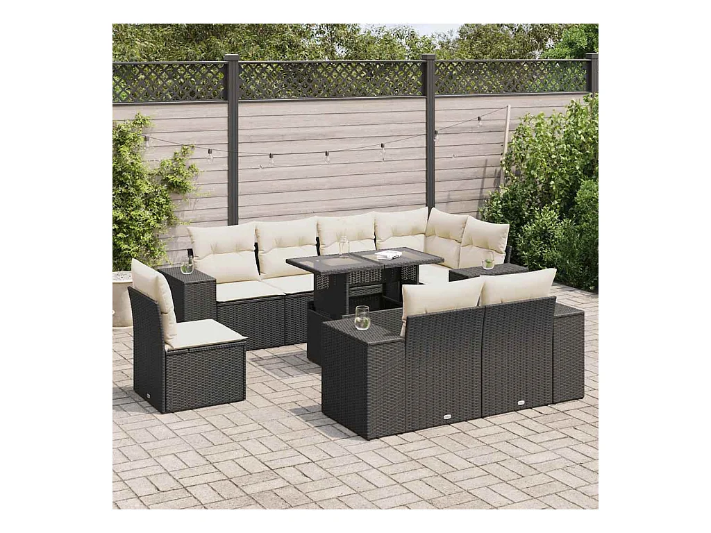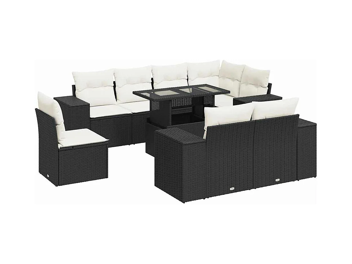 Salon de jardin 9 pièces avec coussins noir résine tressée