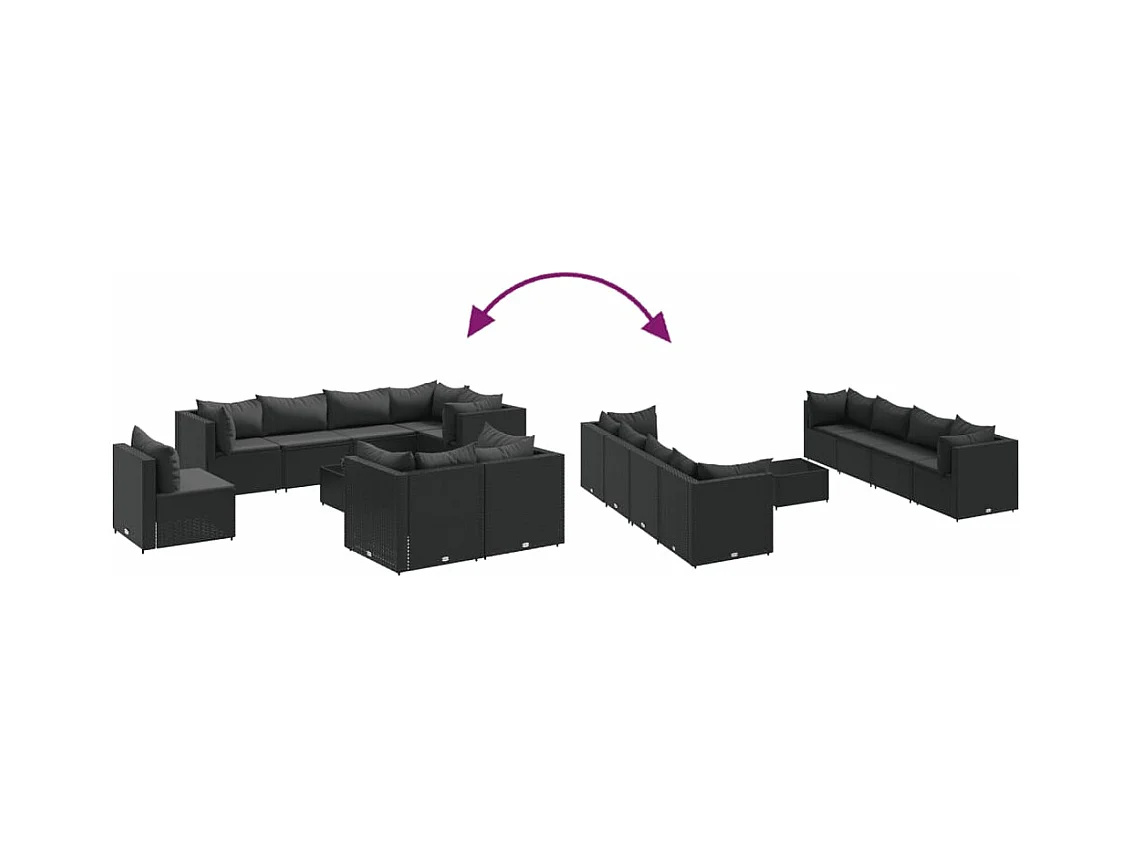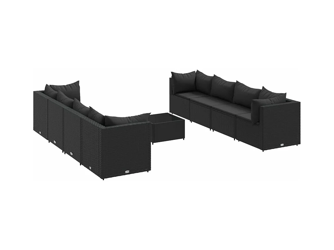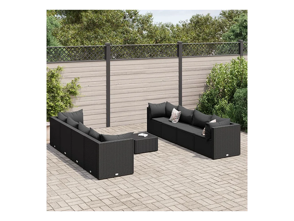 Salon de jardin 9 pièces avec coussins noir résine tressée