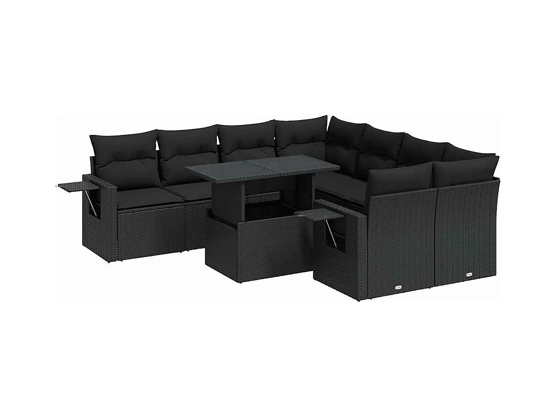 Salon de jardin 9 pièces avec coussins noir résine tressée