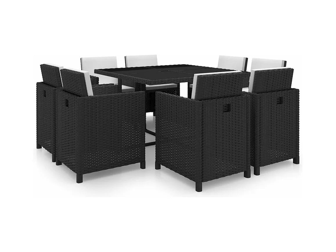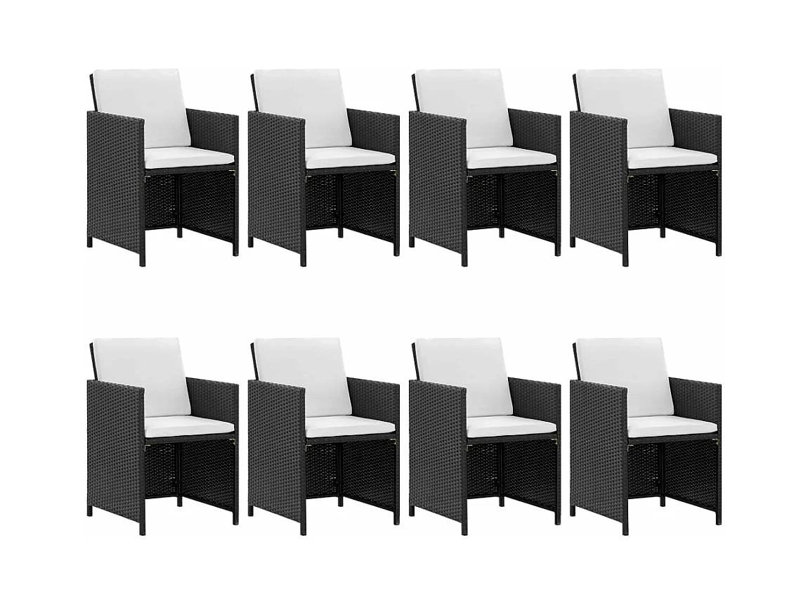 Salon de jardin 9 pièces avec coussins Résine tressée Noir