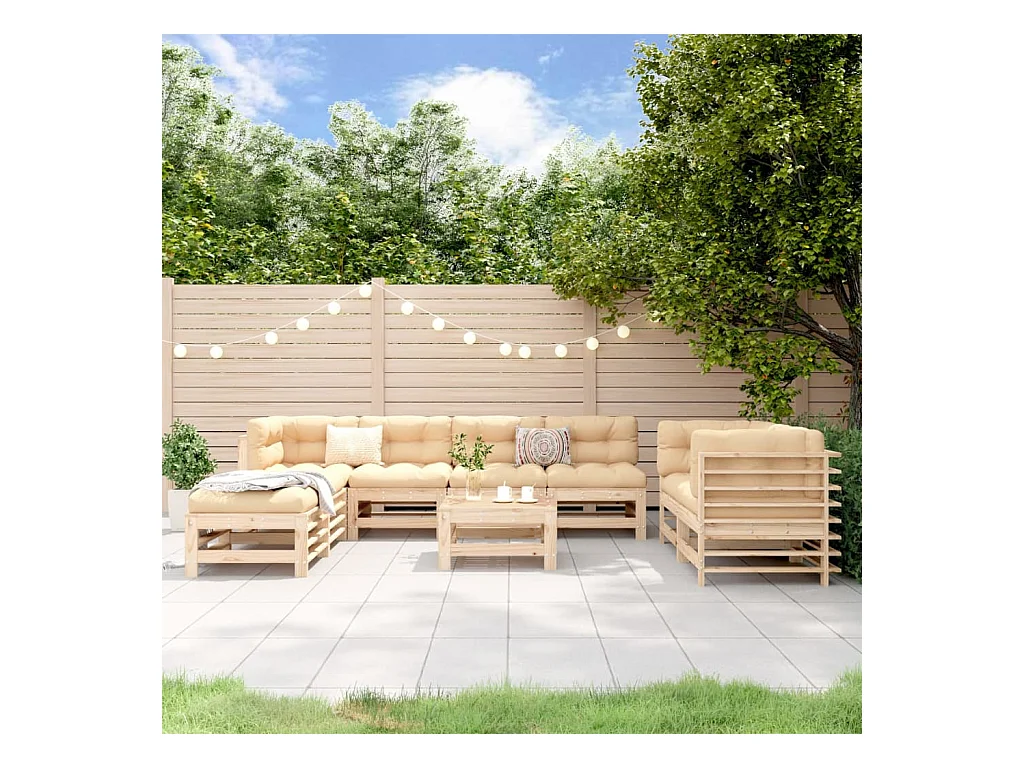 Salon de jardin 8 pcs bois de pin massif BE18013