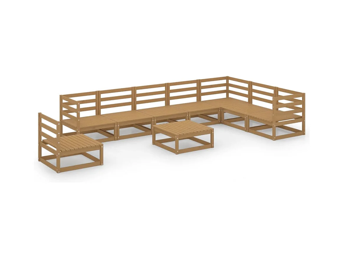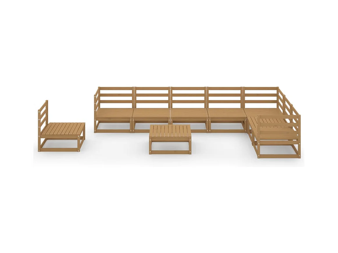 Salon de jardin 9 pièces marron miel bois de pin massif