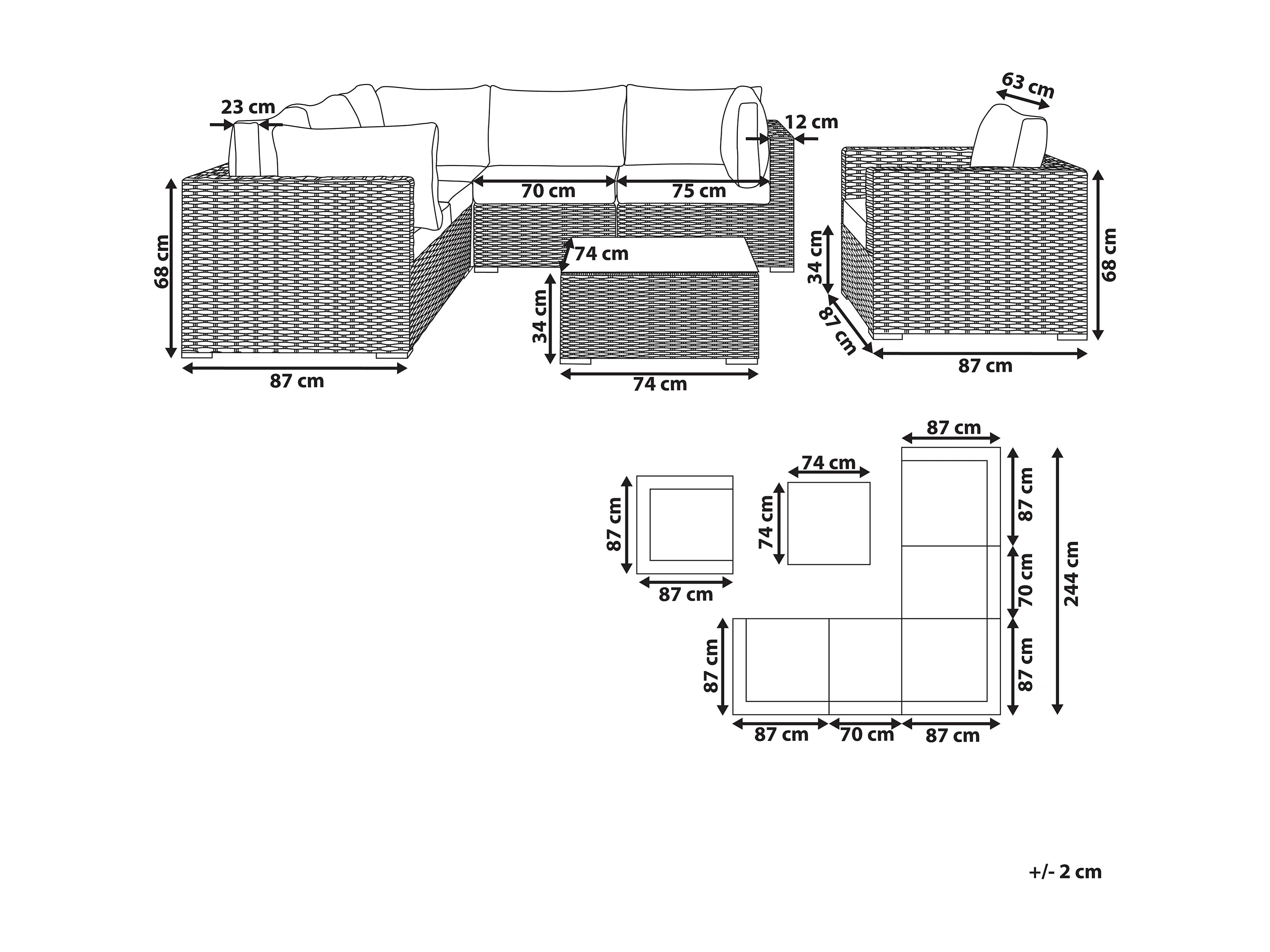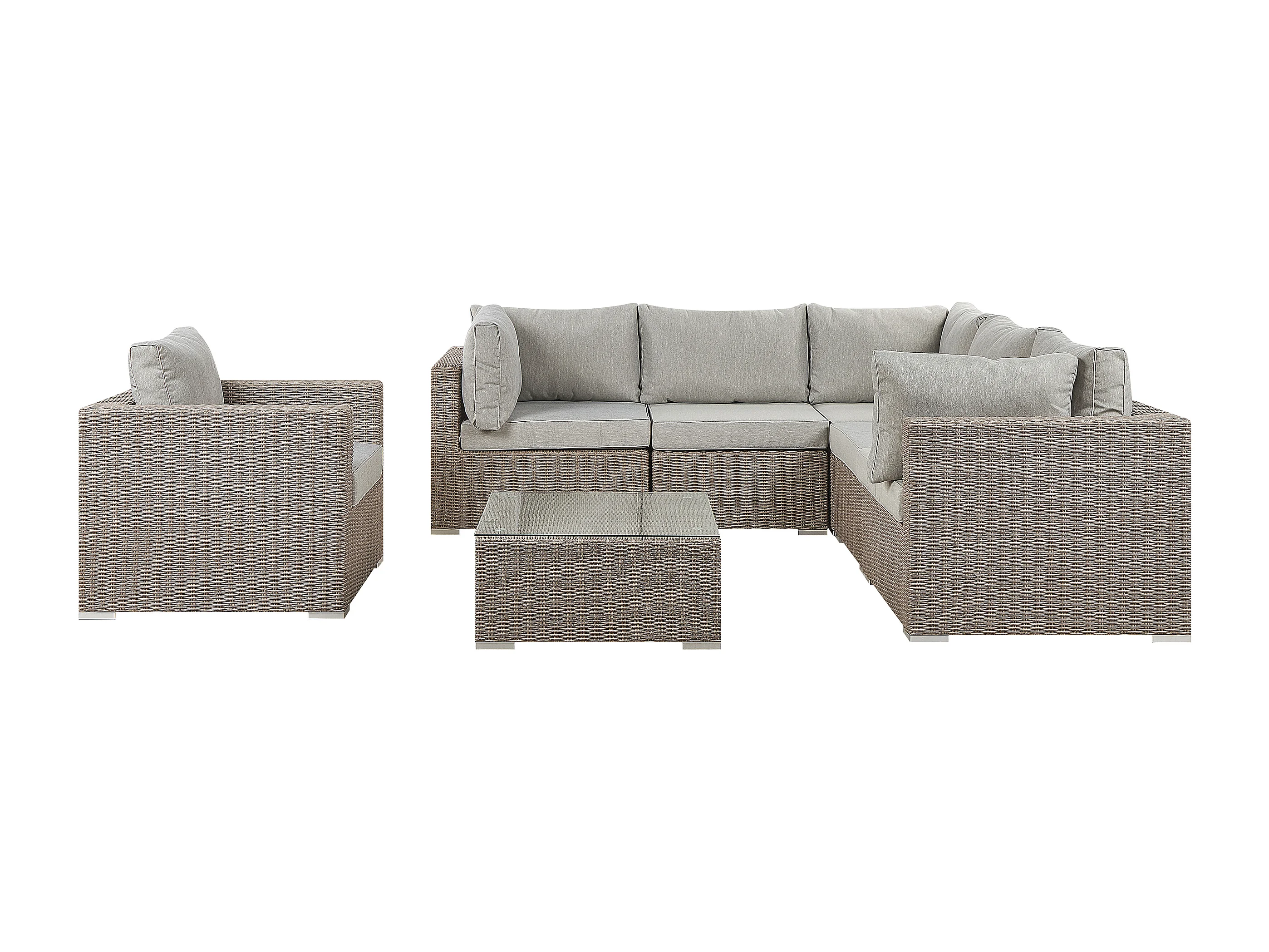 Ensemble de salon de jardin avec table 6 places CONTARE Côté droit Taupe