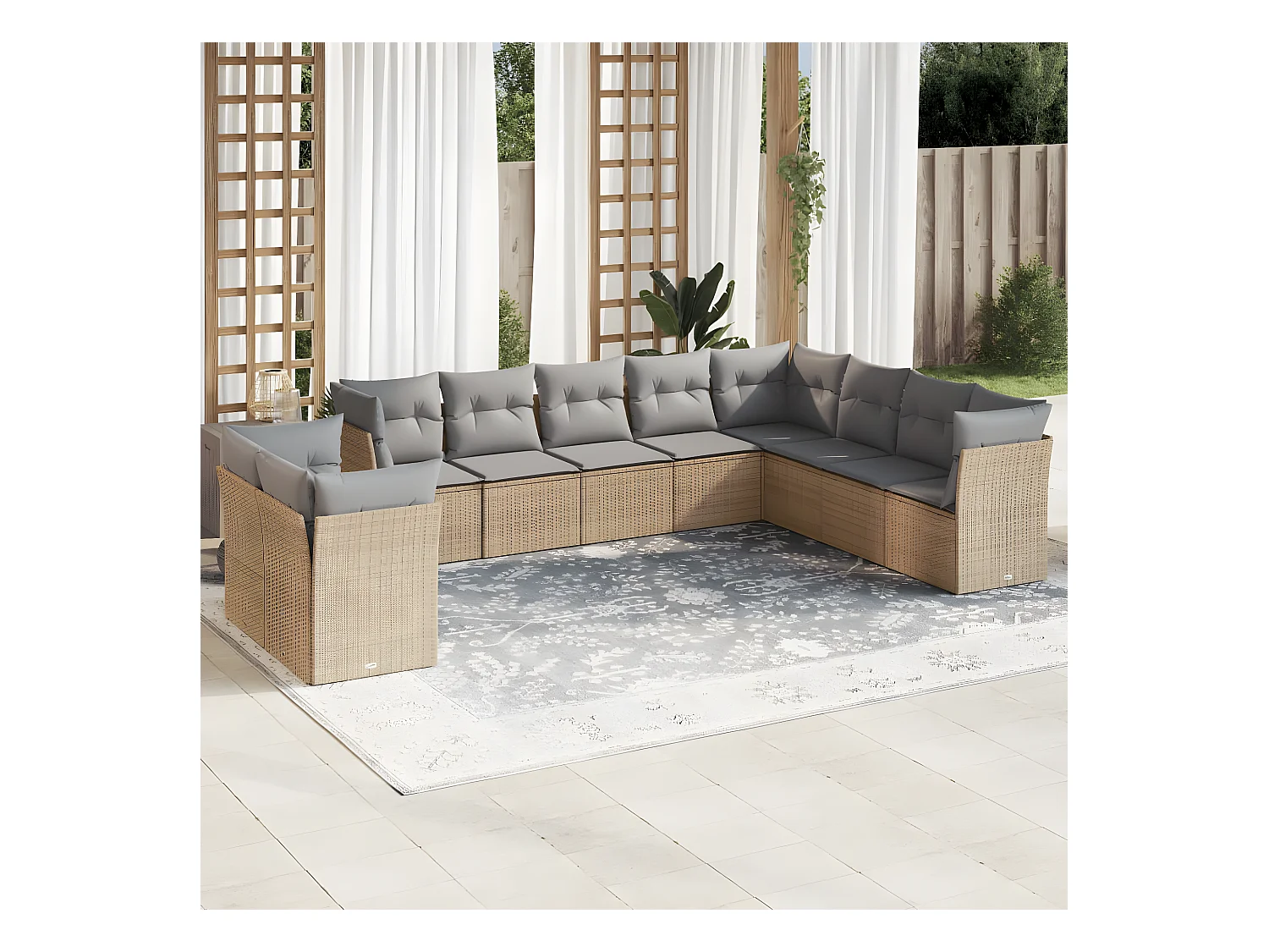 Salon de jardin avec coussins 10 pcs beige résine tressée