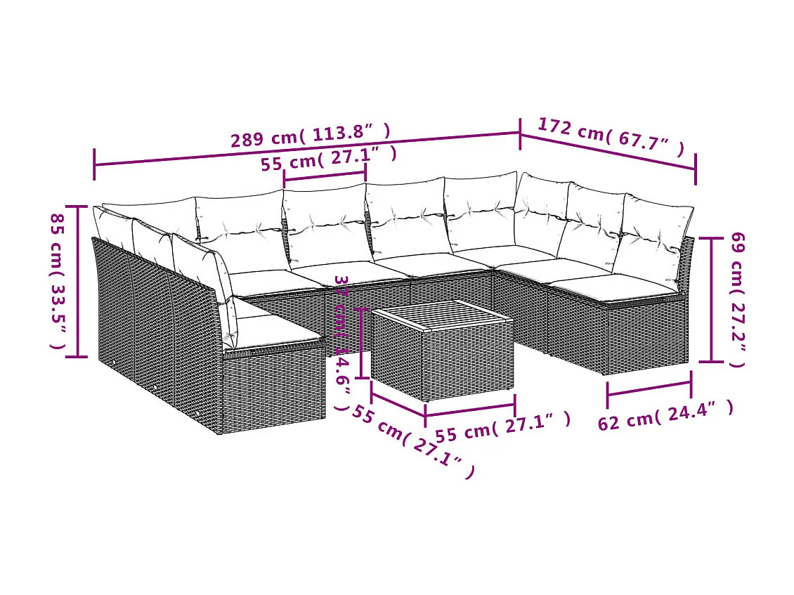 Salon de jardin avec coussins 10 pcs beige résine tressée