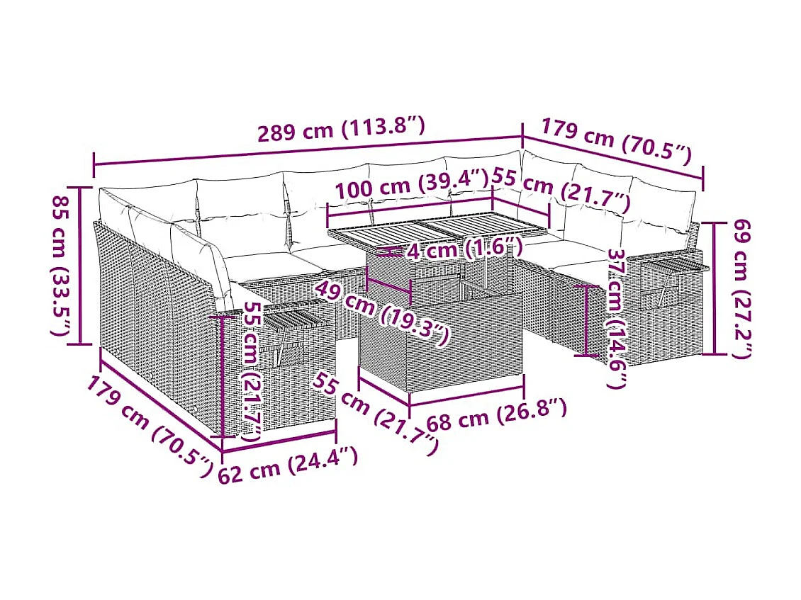 Salon de jardin avec coussins 10 pcs beige résine tressée