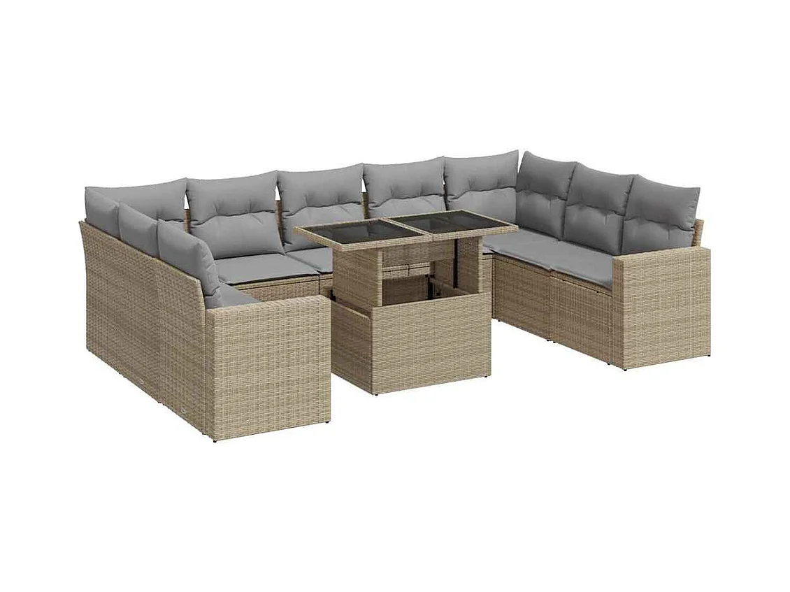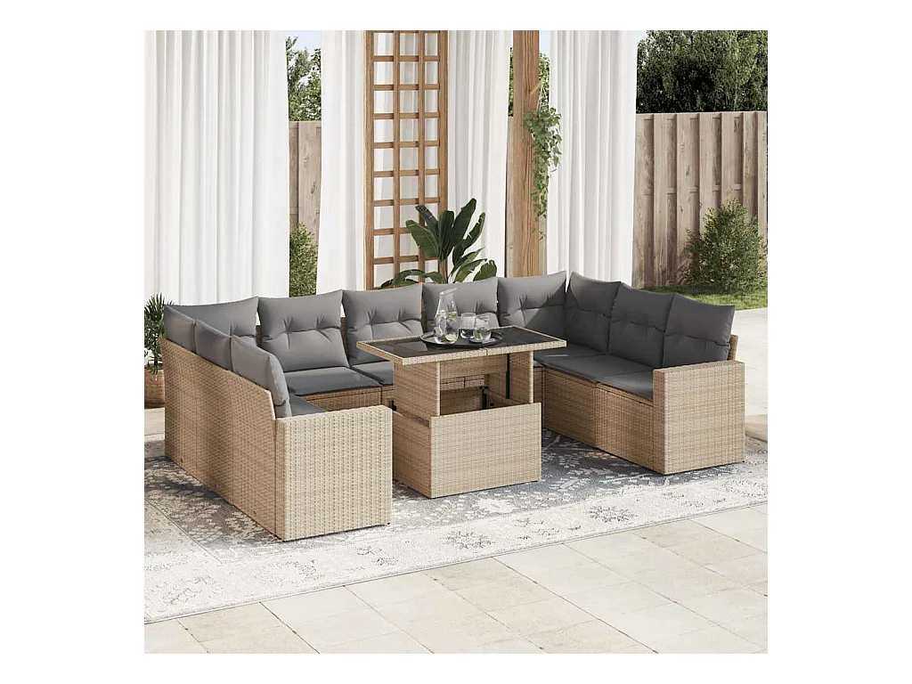 Salon de jardin avec coussins 10 pcs beige résine tressée