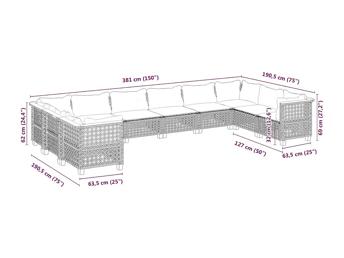 Salon de jardin avec coussins 10 pcs beige résine tressée